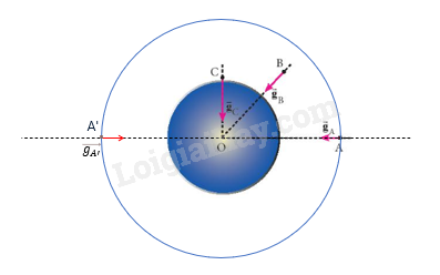 Trên Hình 3.2, hãy xác định ba điểm trên đường thẳng OA mà cường độ trường hấp dẫn có độ lớn nhỏ hơn, bằng và lớn hơn gA. Biểu diễn vectơ cường độ trường hấp dẫn tại ba điểm đó.