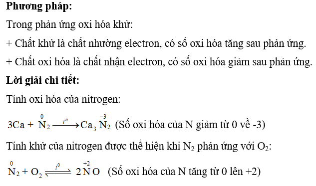 Câu hỏi 4: Viết phương trình hoá học chứng minh tính oxi hoá và tính khử của nitrogen. Cho biết số oxi hoá của nitrogen thay đổi như thế nào trong các phản ứng hoá học đó.