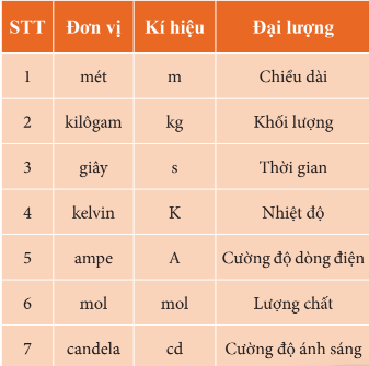 Kể tên một số đại lượng vật lí và đơn vị của chúng mà các em đã được học trong môn Khoa học tự nhiên. Phân biệt đơn vị và thứ nguyên trong Vật lí. Phân tích thứ nguyên của khối lượng riêng ρ theo thứ nguyên của các đại lượng cơ bản. Từ đó cho biết đơn vị của ρ trong hệ SI.