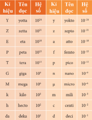Tên và kí hiệu tiếp đầu ngữ của bội số, ước số thập phân của đơn vị