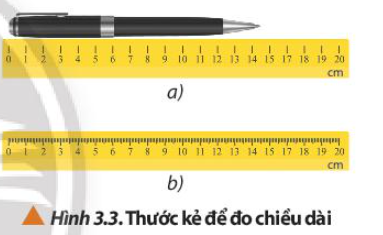 + Hình a: Đặt bút không đúng cách. Cần phải đặt bút song song với thước, một đầu của thước đặt vào vị trí số 0 của thước, đầu còn lại dừng ở vị trí nào của thước thì đó chính là số đo của thước