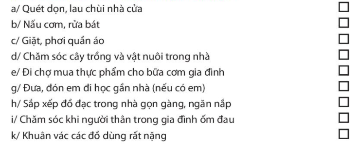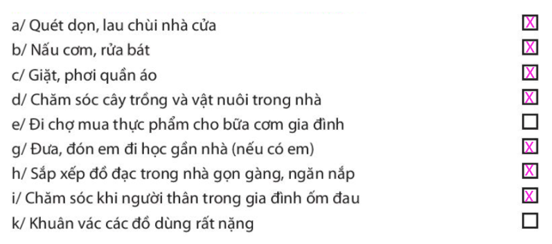 (Đánh dấu X vào ô trống ở những phương án em chọn)