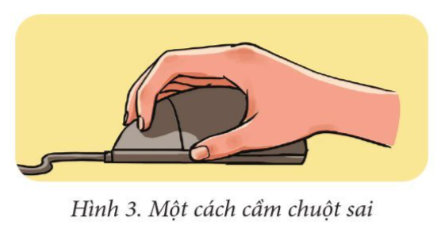 Cách cầm chuột trong Hình 3 sai vì chưa đặt cả lòng bàn tay lên chuột.