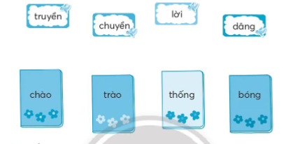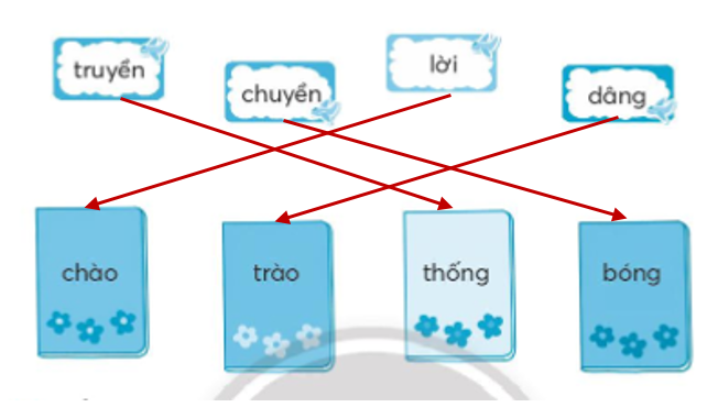 Nối tiếng ở mỗi chiếc nhãn phù hợp với một tiếng ở quyển vở để tạo thành các từ ngữ đúng.