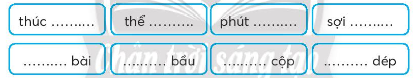 Em tìm những từ ngữ chứa tiếng mà trong tiếng chứa các vần trên.