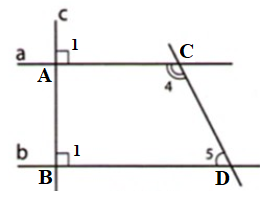 Theo đề bài: \(a \bot c\) và \(b \bot c\) nên \(\widehat {{A_1}} = \,\widehat {{B_1}} = {90^o}\), mà hai góc này ở vị trí đồng vị nên \(a//b.\)