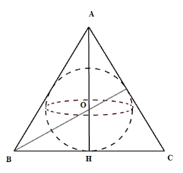 Cho một tam giác đều $ABC$ có cạnh $AB = 8cm$, đường cao $AH$. Khi đó thể tích hình cầu được tạo thành khi quay nửa đường tròn nội tiếp tam giác $ABC$ một vòng quanh $AH$.