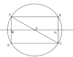 Gọi \(O\) là tâm của hình chữ nhật nên $OA = OB = OC = OD$ nên \(O\) là tâm đường tròn ngoại tiếp hình chữ nhật \(ABCD\) . Khi đó bán kính đường tròn là \(R = OA = \dfrac{{AC}}{2}\)