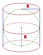 Vì đường kính đáy và chiều cao của hình trụ bằng nhau và bằng đường kính hình cầu nên \(h = 2R\) với \(R\) là bán kính hình cầu và cũng là bán kính đáy của hình trụ.