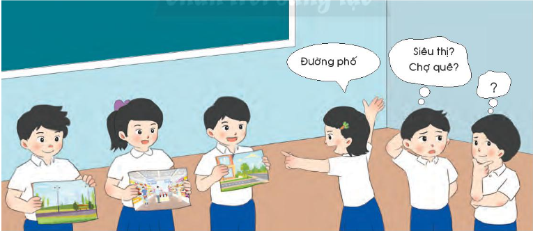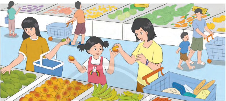 – Ở siêu thị, em cùng mẹ mua thức ăn, những vật dụng thiết yếu trong cuộc sống hằng ngày, quần áo, sách vở,…