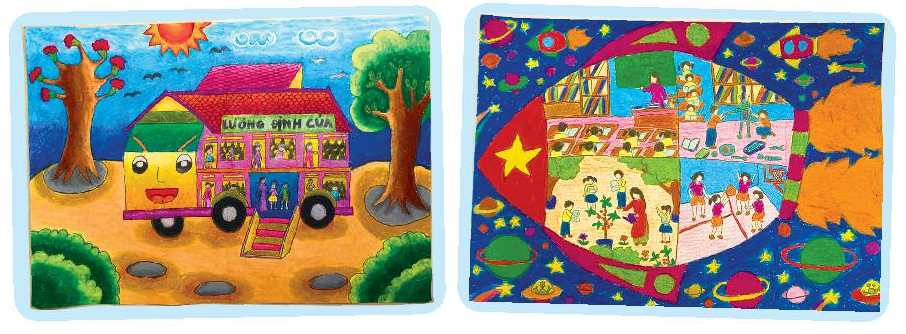 Tranh 2: Ngôi trường vũ trụ em mơ ước.