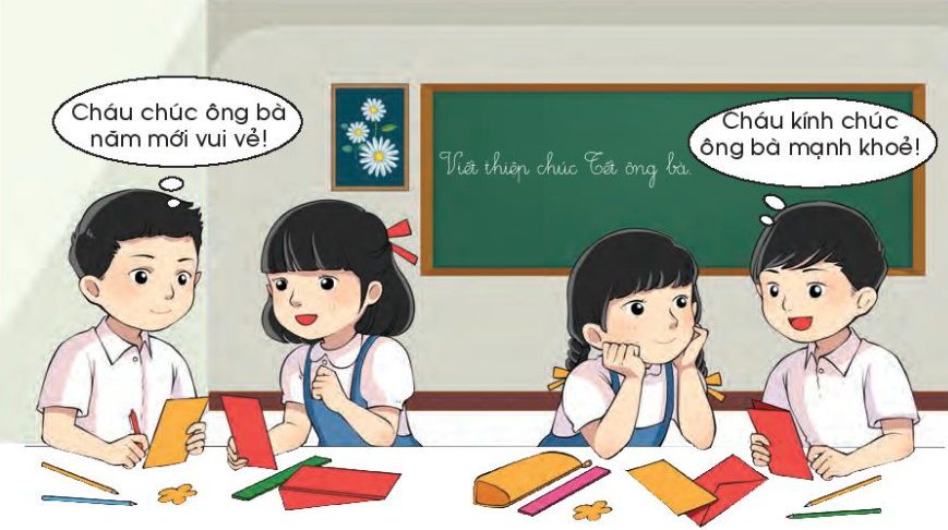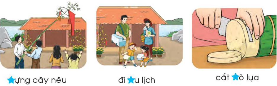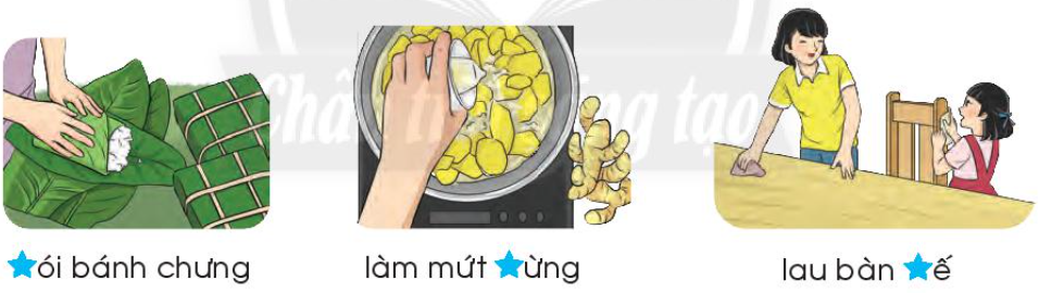 Nêu tên hai, ba món ăn có trong bức tranh dưới đây. Mâm cơm ngày Tết ở Huế. Kể tên các món ăn chính trong mâm cơm ngày Tết ở Huế. Món nào là món ăn đặc biệt của người Huế trong những ngày Tết. Tập viết. Nghe – viết Mâm cơm ngày Tết ở Huế. Thay hình ngôi sao bằng chữ g hoặc chữ gh. Thay hình ngôi sao bằng chữ d hoặc chữ gi. Quan sát bức tranh dưới đây và cho biết. Viết vào vở một nội dung mà em vừa nói. Làm thiệp và viết lời chúc Tết ông bà.