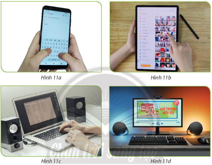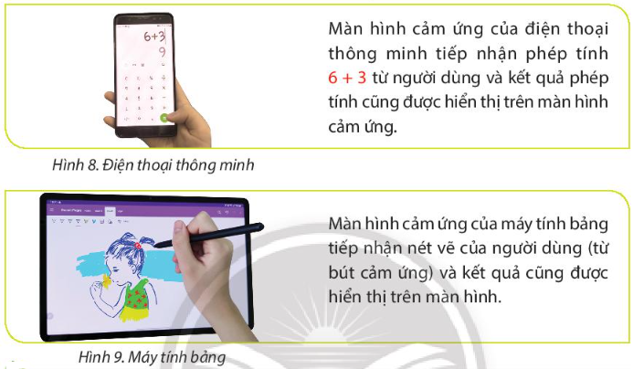– Hình 11a + 11b: Màn hình cảm ứng của điện thoại thông minh (11a), máy tính bảng (11b) vừa là thiết bị vào, vừa là thiết bị ra.