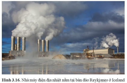 Quan sát hình 3.16 và dự đoán chất phát thải từ nhà máu điện địa nhiệt là chất gì? Tìm kiếm thông tin từ các nguồn tin cậy trên Internet để kiếm tra dự đoán của bạn.