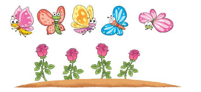 Số bướm nhiều hơn số bông hoa.