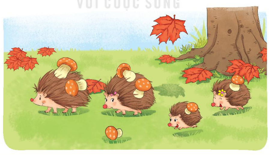Đếm số cây nấm và số nhím rồi kết luận.