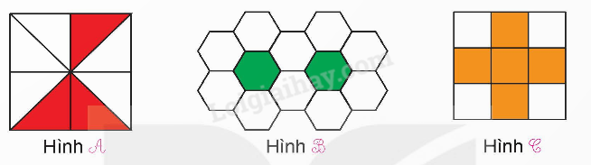 b) $\frac{3}{5}$ bằng phân số chỉ phần đã tô màu của hình nào dưới đây?