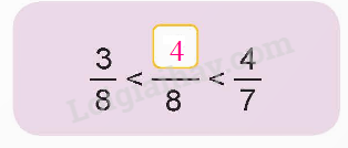 Ta có: $\frac{3}{8} < \frac{4}{8}$và $\frac{4}{8} < \frac{4}{7}$ nên số cần điền là số 4.