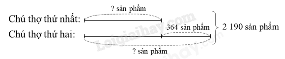 Hai chú thợ làm được 2 190 sản phẩm. Chú thợ thứ nhất làm được ít hơn chú thợ thứ hai là 364 sản phẩm. Hỏi mỗi chú thợ làm được bao nhiêu sản phẩm?
