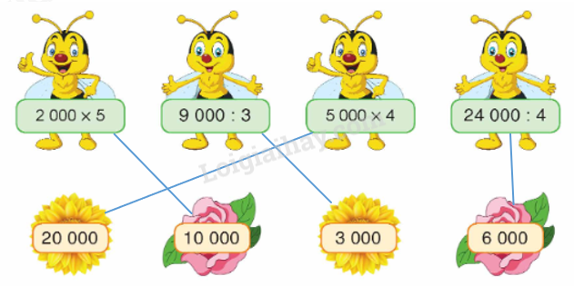Hưởng ứng phong trào ủng hộ học sinh vùng bị lũ lụt, ngày thứ nhất.Tìm kết quả thích hợp với mỗi phép tính: