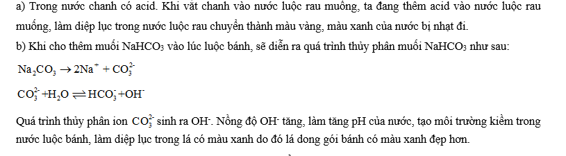 a) Giải thích vì sao khi vắt chanh vào nước luộc rau muống thì màu xanh của nước lại bị nhạt đi.