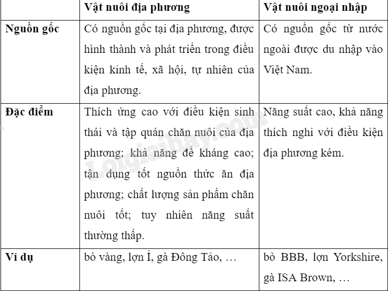 Hãy trình bày nguồn gốc, đặc điểm của một số vật nuôi địa phương và vật nuôi ngoại nhập.