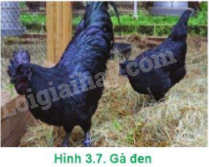 Quan sát Hình 3.7, ta thấy: Đặc điểm sinh học dùng để phân biệt vật nuôi trong Hình 3.7 là đặc điểm hình thái, ngoại hình: màu sắc của lông, của da, chân nhiều lông, …
