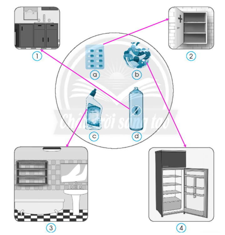 Nối các vật dụng sau vào vị trí phù hợp trong nhà.