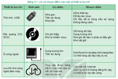 D. Lưu trữ bằng thẻ nhớ, USB dễ bị rơi, mất dữ liệu nhưng thuận tiện.