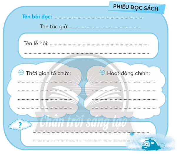 Em tìm hiểu kĩ một bài đọc về chủ đề lễ hội để viết vào Phiếu đọc sách cho phù hợp.