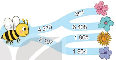 b) Con ong bay theo đường ghi các số lẻ (là con đường ghi số 2 107 và 1 965) thì bay đến bông hoa màu vàng.