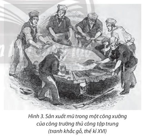 Quan sát hình dưới đây, hãy cho biết việc phân công lao động thời kì hình thành quan hệ sản xuất tư bản chủ nghĩa ở Tây Âu thế kỉ XVI được thể hiện như thế nào.
