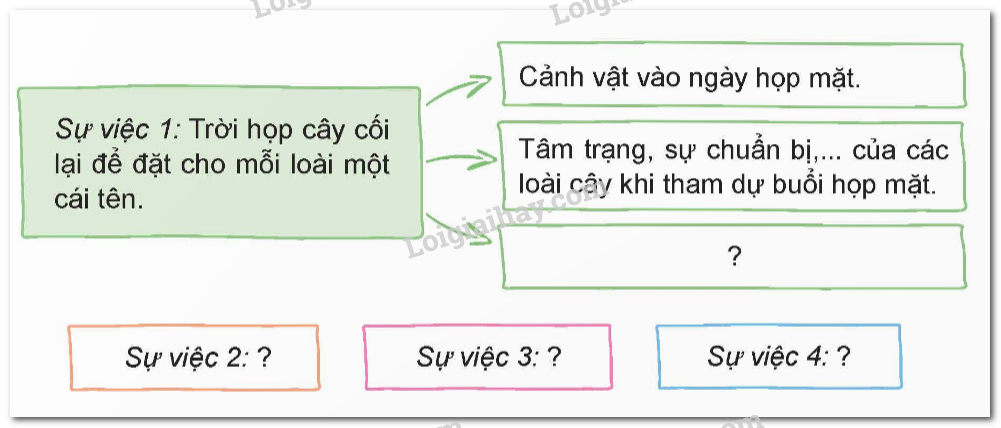 Sự việc 1: Trời họp cây cối lại để đặt cho mỗi loài một cái tên.