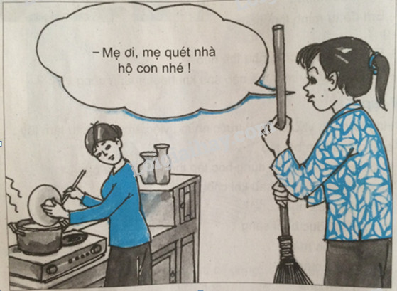 Tình huống 1: Ở nhà, Hạnh được phân công quét nhà. Hôm nay Hạnh thấy ngại nên nhờ mẹ làm hộ.
