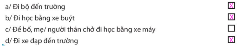 (Đánh dấu X vào ô trống ở những phương án em chọn)