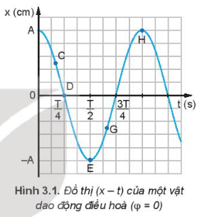 Xác định độ dốc của đồ thị tại các điểm C, D, E, G, H bằng cách đặt một thước kẻ (loại 20 cm) cho mép của thước tiếp xúc với đồ thị li độ – thời gian tại các điểm C, D, E, G, H (Hình 3.1). Từ độ dốc của thước hãy so sánh độ lớn vận tốc của vật tại các điểm C, E, H
