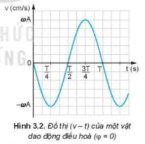 1. So sánh đồ thị của vận tốc (Hình 3.2) với đồ thị của li độ (Hình 3.1), hãy cho biết vận tốc sớm pha hay trễ pha bao nhiêu so với li độ.