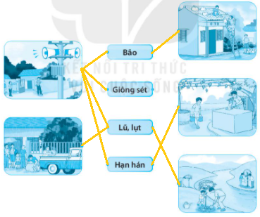 Nối hình thể hiện biện pháp ứng phó với ô chữ chỉ hiện tượng thiên tai tương ứng.