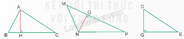 Quan sát hình vẽ để xác định đáy và đường cao tương ứng trong mỗi hình tam giác.