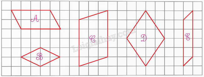 b) Các hình bình hành là: Hình A; hình C; hình E.