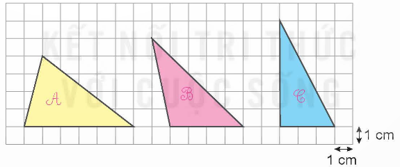 – Hình tam giác B có độ dài đáy 4 cm, chiều cao là 5 cm.