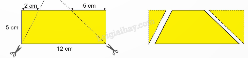 a) Phần còn lại của tờ giấy sau khi cắt là hình thang.