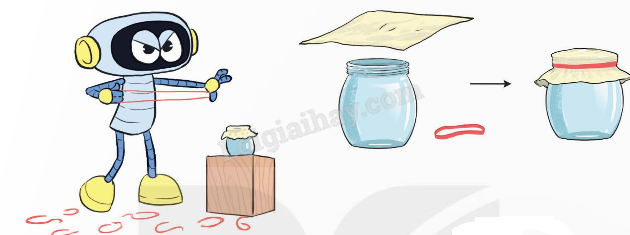 Vậy Rô-bốt có thể dùng sợi chun đó cùng với túi bóng để buộc kín miệng bình.