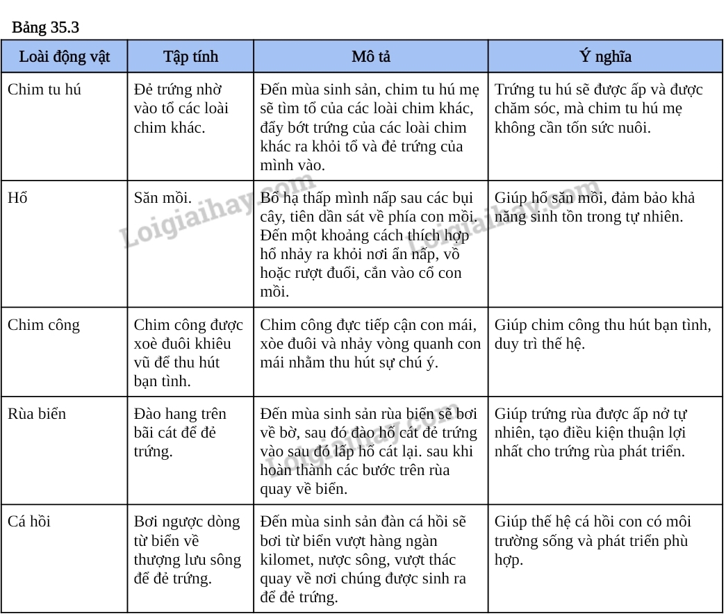– Quan sát tranh ảnh, video về một số tập tính ở động vật như tập tính kiếm ăn, đánh dấu lãnh thổ, chăm sóc con non, di cư, sống bầy đàn,…