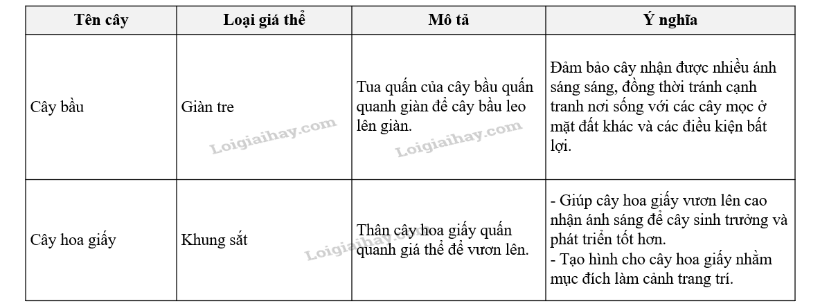 Hoàn thành bảng ghi kết quả thí nghiệm chứng minh tính hướng tiếp xúc của cây