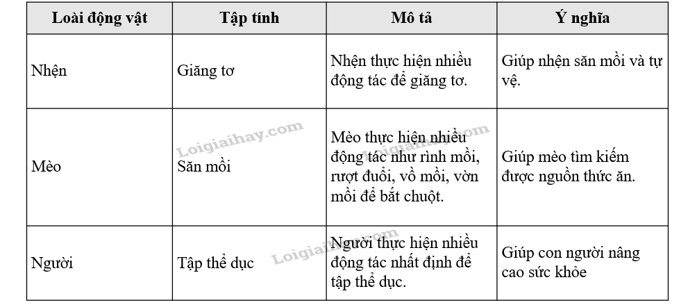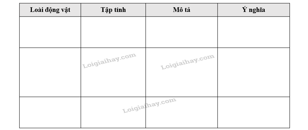 Hoàn thành bảng ghi kết quả quan sát một số tập tính ở động vật