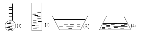 Bốn bình 1, 2, 3, 4 cùng đựng nước như dưới. Áp suất của nước lên đáy bình nào lớn nhất?