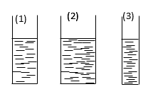 Trong hình bên, mực chất lỏng ở $3$ bình ngang nhau. Bình $1$ đựng nước, bình $2$ đựng rượu, bình $3$ đựng thuỷ ngân.Gọi \({p_1},{\rm{ }}{p_2},{\rm{ }}{p_3}\) là áp suất của các chất lỏng tác dụng lên đáy bình $1, 2$ và $3$. Chọn phương án đúng: