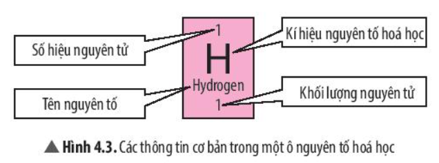 – Ô nguyên tố cho biết: kí hiệu hóa học, tên nguyên tố, số hiệu nguyên tử và khối lượng nguyên tử của nguyên tố đó.