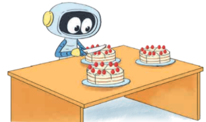 Ba chiếc bánh kem được cắt làm số phần là: